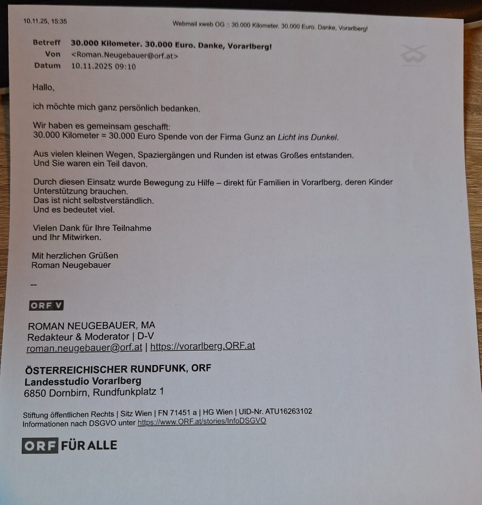 30.000 km Challenge fürs Licht ins Dunkel 2025 zu Gunsten von NELI Netzwerk.Eltern.Inklusion für den Aufbau einer Peer-to-Peer Beratung!