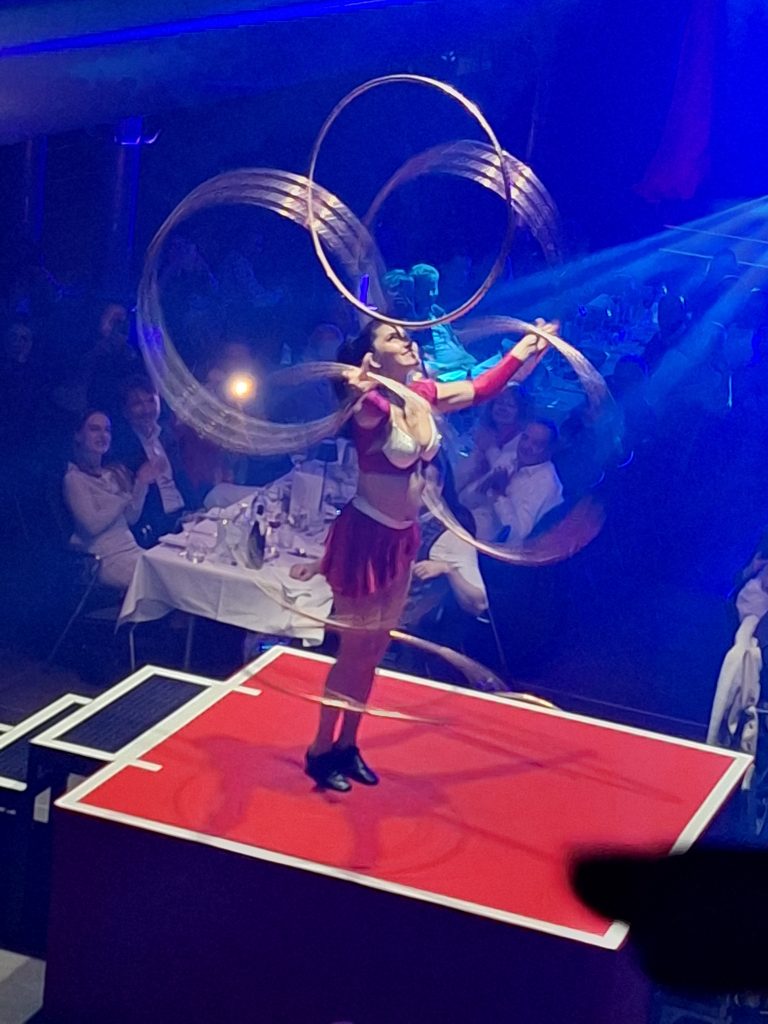 Inklusive leckerem 4 Gänge Menü und einer Akrobatik Show, welche an unser Alltag und unser aller täglichen jonglieren nicht passendender hätte sein können! In unser Situation Zeit und Energie fürs unbezahlte Ehrenamt zu finden ist EINZIGARTIG. PS. Das wir gemeinsam am Abend teilnehmen konnten, verdanken wir unseren Netzwerken und besonders unseren verständnisvollen Partnern, da sie sich währenddessen um unsere Angehörigen gekümmert haben! Vielen DANK!